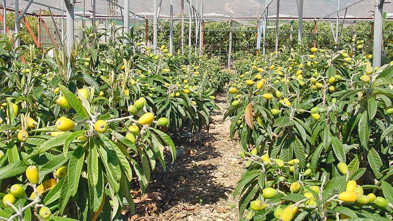 Otro frutal de pepita como el níspero también se puede adaptar muy bien al modelo de producción intensiva. En un trabajo realizado en la Estación Experimental Cajamar se confirma la viabilidad de una plantación de alta densidad de níspero japonés injertado sobre membrillero EM-C, a un marco de 2,5 x 1,7 m (2353 árboles por hectárea).