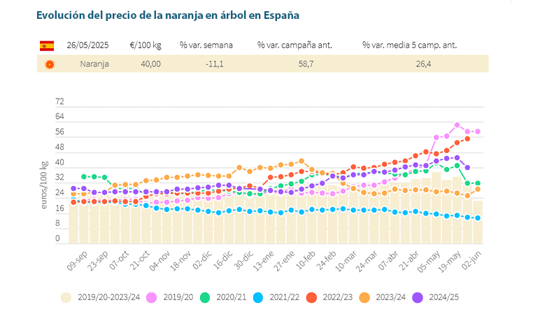 Evolución del precio de la naranja en árbol en España