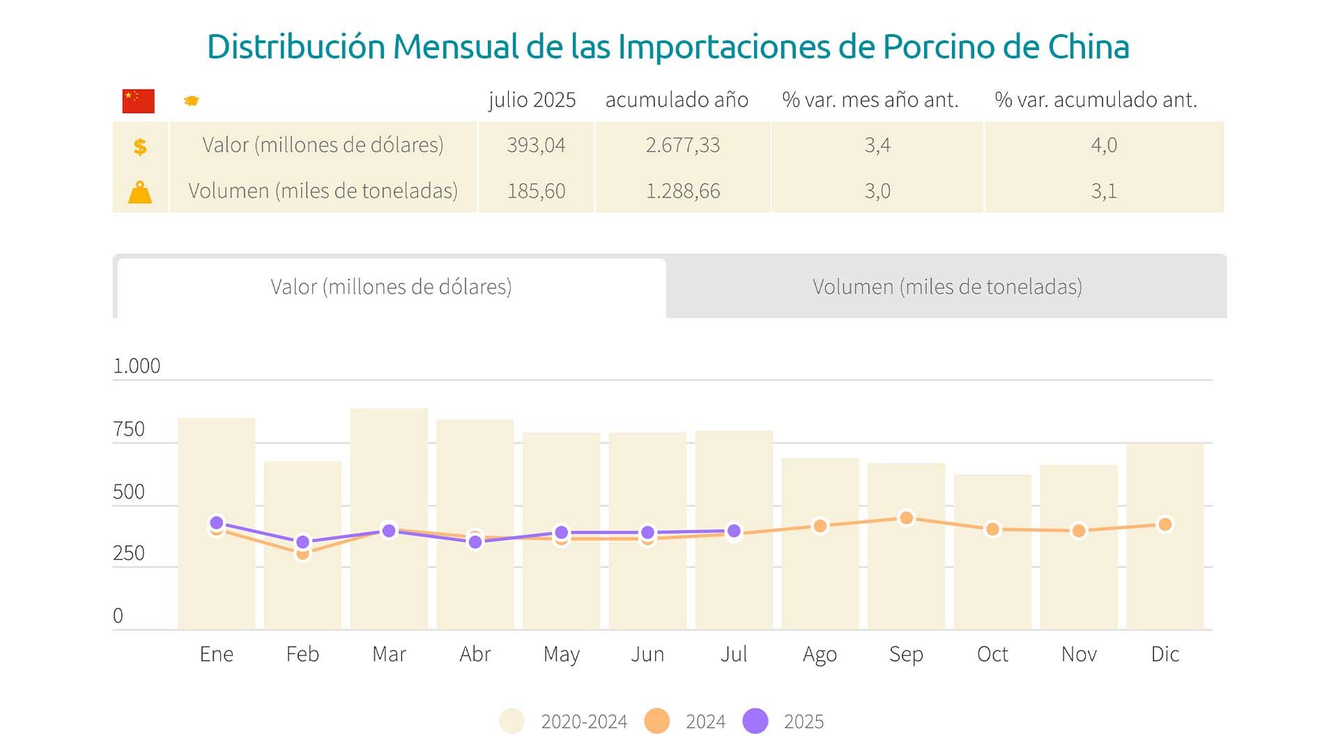 Distribución mensual de las importaciones de porcino de China